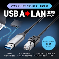 USB AポートをLANポートに変換し、有線で安定した高速ネットワーク接続を実現。ドライバ不要で簡単接続。