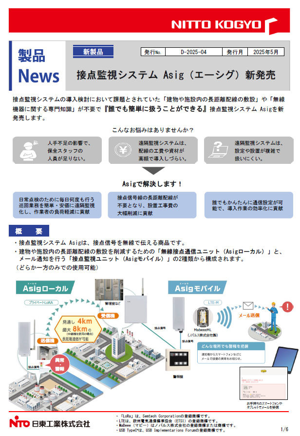 接点監視システムAsigは、接点信号を無線で伝える商品です
